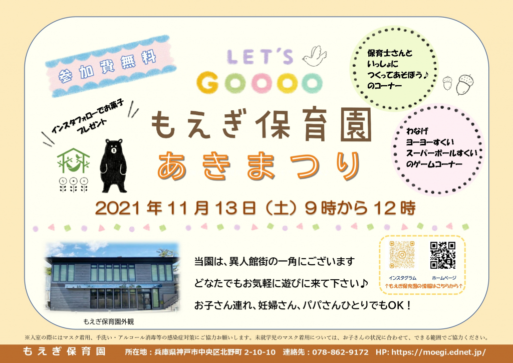 もえぎ保育園であきまつりを開催いたします🍂